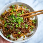 Start by preparing your rice noodles according to the packet instructions. Once cooked, drain and rinse under cold water to stop the cooking process and keep the noodles from getting soggy. Toss them lightly with a teaspoon of sesame oil; this simple step ensures they stay separate and add a subtle, nutty aroma that complements the beef beautifully. If you prefer hot noodles, skip rinsing with cold water and cook them after the beef for best results.