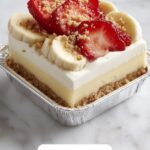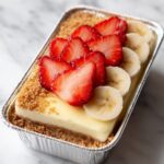 - Repeat Layers: Add the remaining pudding mixture over the topping, followed by another layer of banana slices, and finish with the remaining strawberry crunch topping on top.
