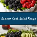 A vibrant and refreshing Summer Cobb Salad featuring a colorful mix of fresh berries, grilled chicken, crunchy almonds, creamy avocado, and tangy blue cheese, all drizzled with a zesty Italian dressing. Perfect for a quick, nutritious meal in just 10 minutes.