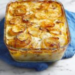 Slice the unsalted butter and distribute the pieces across the top of the seasoned onions. As the dish bakes, the butter will melt into the layers, enriching them and helping everything meld together beautifully.