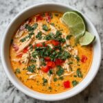 Ladle your gorgeous soup into bowls, then top with fresh cilantro leaves, a few slices of red chili if you like extra heat, and those bright lime wedges. This final touch adds freshness and makes the Thai Coconut Chicken Soup Recipe look as good as it tastes.