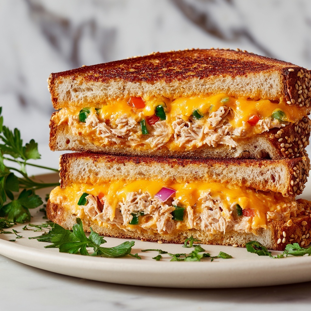 For a vegetarian option, you could substitute the tuna with chickpeas mashed with similar seasonings. Vegan versions can use vegan mayo and vegan cheese slices to keep things plant-based while still creamy and delicious.