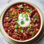 Sprinkle in 2 tablespoons of chili powder and 1 teaspoon of cumin to infuse the chili with smoky warmth and earthy notes. Season with salt and pepper according to your taste. Bring the mixture to a gentle boil, then reduce the heat and let it simmer uncovered for 20 to 25 minutes. This simmering lets the flavors marry beautifully and thickens the chili to your desired consistency.