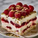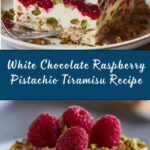 This White Chocolate Raspberry Pistachio Tiramisu is a luscious no-bake dessert combining creamy mascarpone, smooth melted white chocolate, fresh raspberries, and crunchy pistachios. Layered with ladyfinger cookies soaked in raspberry juice, it offers a delightful mix of fruity, nutty, and rich flavors, making it perfect for spring gatherings or special occasions.