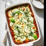 Repeat the zucchini layer again, following with the remaining Bolognese sauce, ricotta mixture, mozzarella, and chopped herbs. This repetition builds those signature lasagna layers, packed with flavor and texture.